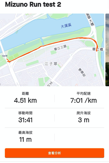 說真的我一開始對於跑 5K 沒什麼信心,但 MIZUNO WAVE SKY NEO 讓我只要專注在我的呼吸上,剩下的交給它的強大機能性就好,這一次的體驗對於我來說真的是非常神奇,那最後大家一定很好奇,我的初體驗成績如何,這邊也不囉唆獻上數據,數據會說話。