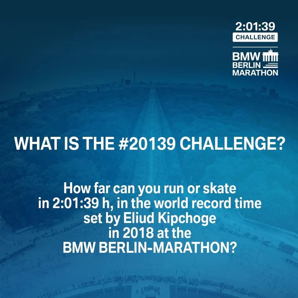 2 小時 01 分 39 秒你能跑多遠?然而這是 Eliud Kipchoge 在 2018 年柏林馬拉松賽上創造的世界紀錄。柏林馬拉松主辦希望大家在 9 月 26 - 27 日,加入一場 #2:01:39 挑戰,繫好你的跑鞋,或者穿上溜冰鞋,騎上你的自行車或輪椅去挑戰你的世界紀錄!