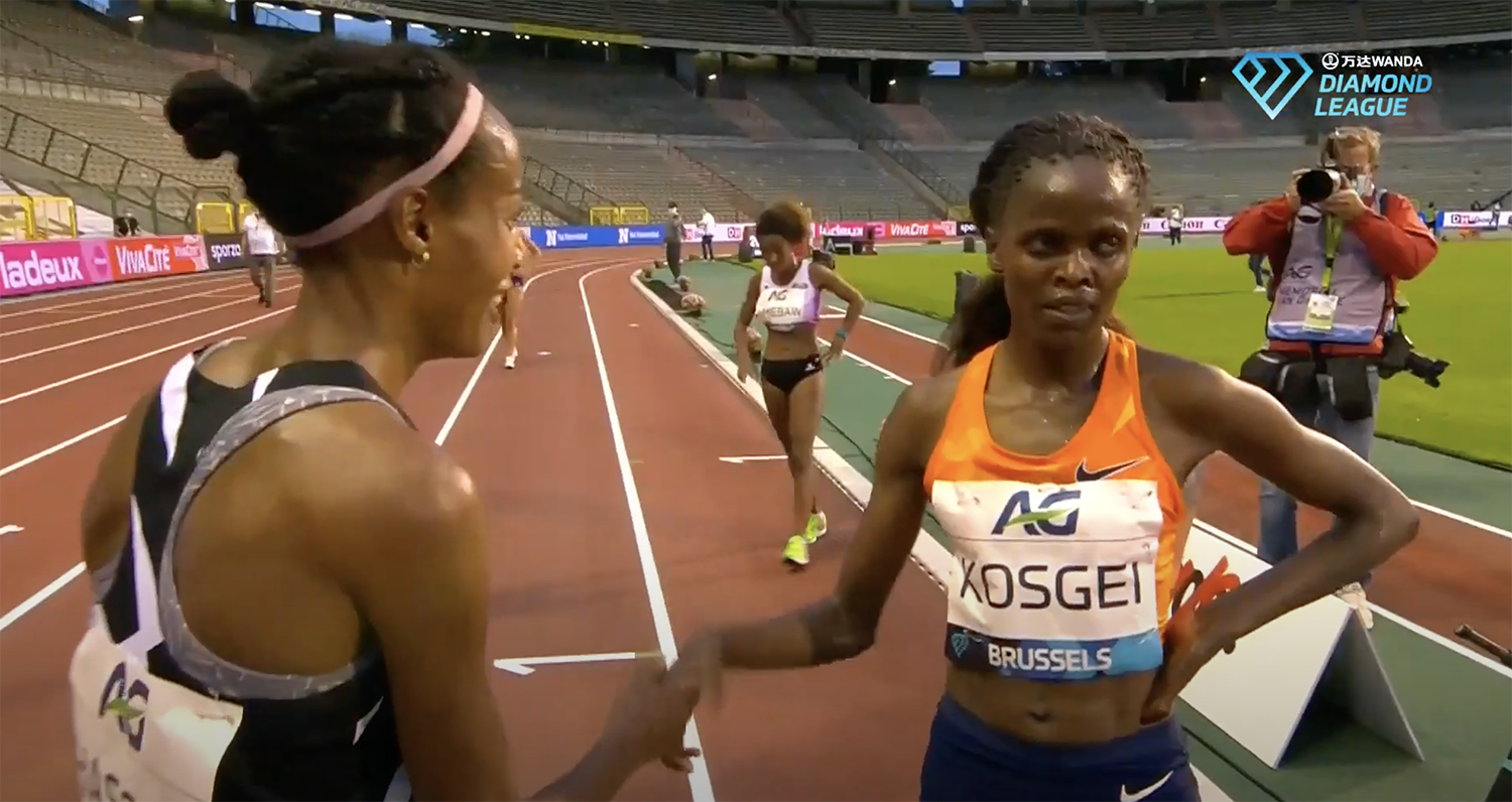 Kosgei 和 Hassan 拉鋸到比賽的最後一分鐘(圖片來源:Youtube)