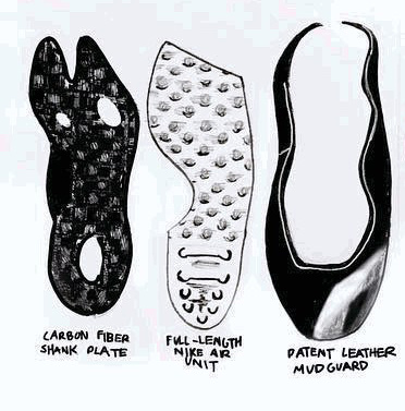 最初碳板主要應用於航天科技或者 F1 賽車這種科技含量較高的項目或運動中,隨後其材質的優異韌性被運用到橄欖球鞋的設計上,對於大部分人來說,第一次接觸到碳板類運動鞋,是籃球鞋 AJ11,設計師通過設計出 X 或 Y 型的碳板內置到運動鞋中底,通過韌性和剛度,增加鞋款的穩定性,防止運動員大幅度動作引發側翻扭轉,從而導致傷病。