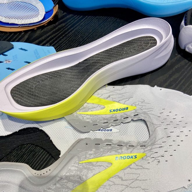 跑者需要通過前掌落地,帶動碳板的曲面對跑者雙腳起到一個降低損耗的推蹬作用。這與傳統運動鞋中的碳板的意義完全不同。