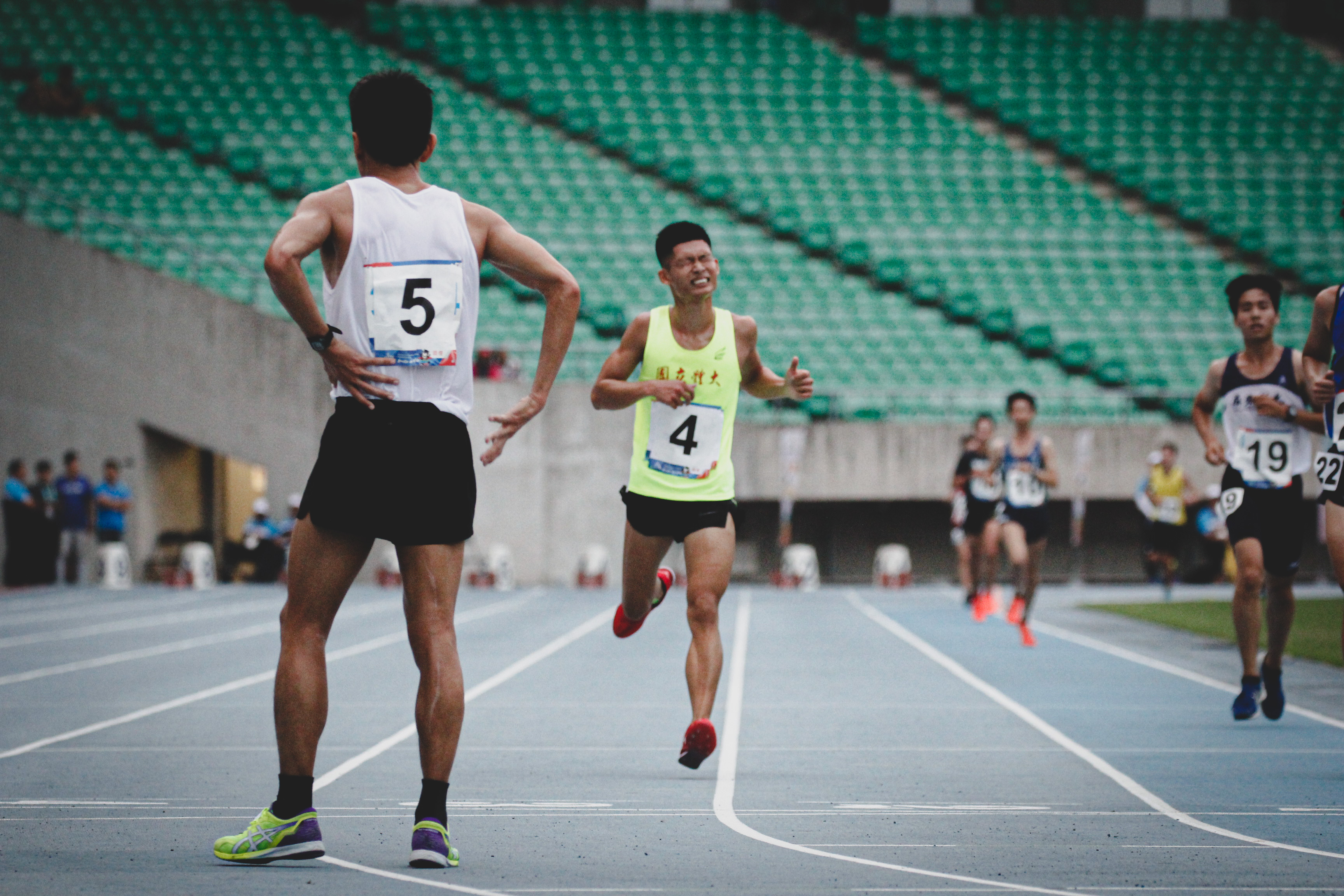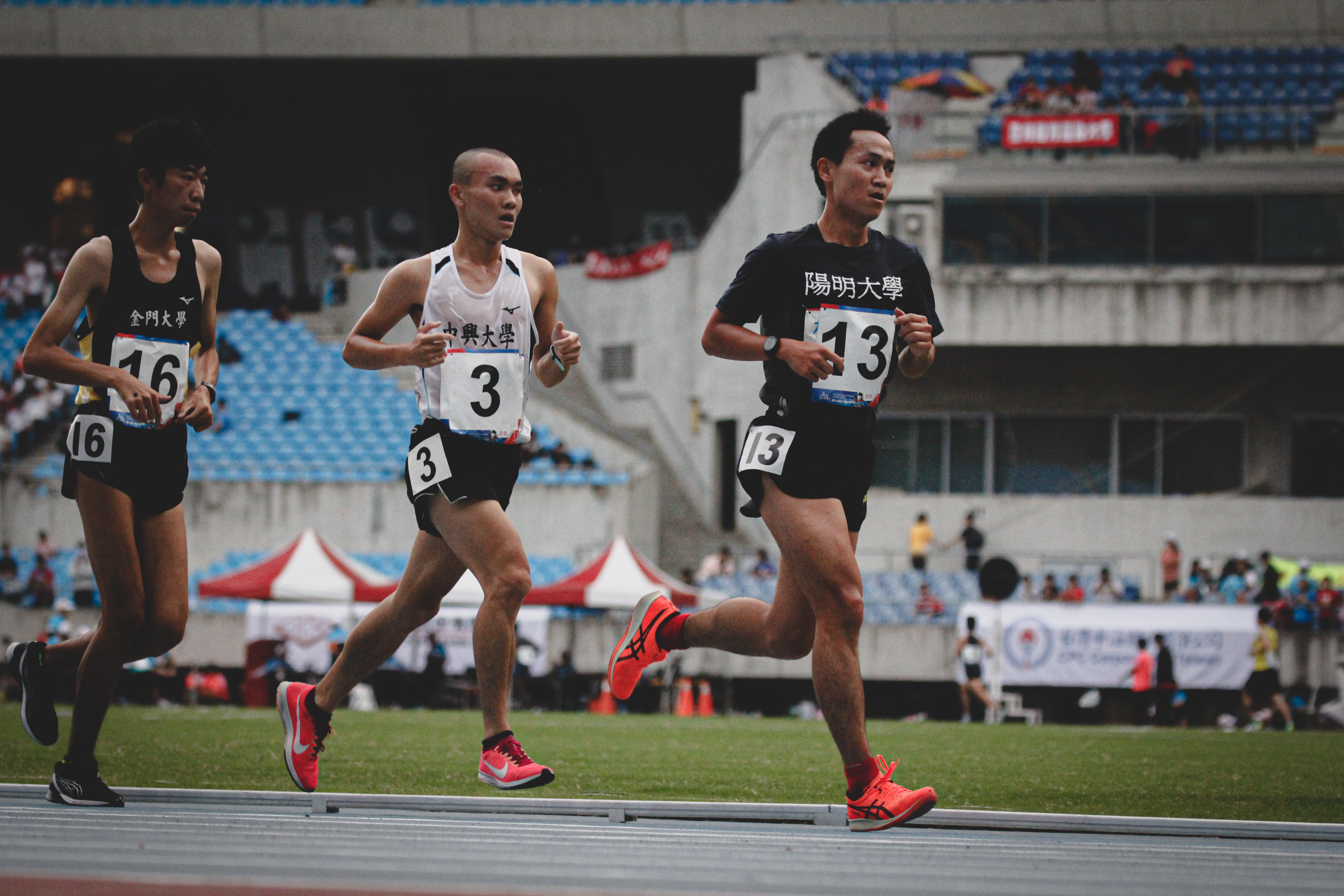 目前就讀碩士班的「馬拉松 PT 」林世奇,此次也代表陽明大學出賽五千與萬米項目,全馬最佳 2:57:58 的他,本次跑出 39:05.07 排名第十二位,他賽後也於臉書社群分享道「在偌大的田徑場,旁人看我們像螞蟻,自己心中卻演得像戰士」,頗具跑者的詩意。