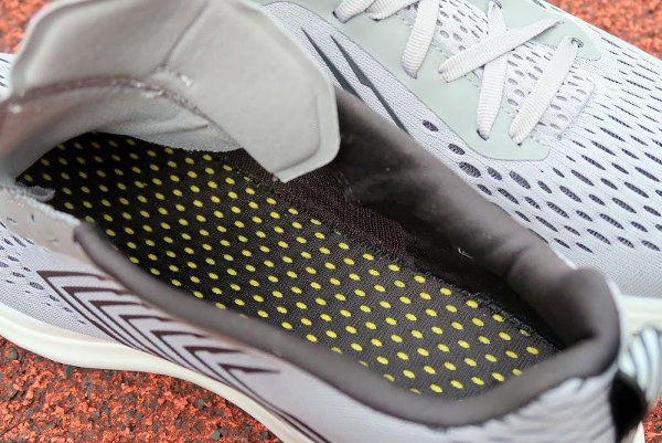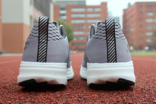 足跟的包覆不會因為太堅硬而產生壓迫感,反而以較柔軟又稍高的護墊,讓跑者在跑動時足跟部位能維持穩定度。後鞋跟上有快穿拉環,方便穿脫,提了就走,攜帶相當方便。