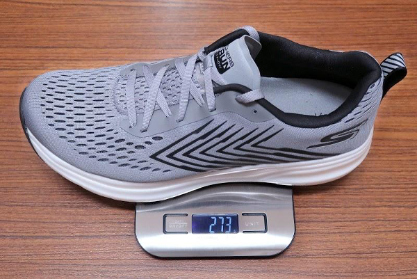 「 SKECHERS GORUN RIDE 8 FLOW 」 28.5 號(US10.5)男鞋,單腳重273公克,是我心目中理想超馬鞋的重量。(圖片來源:小賴)