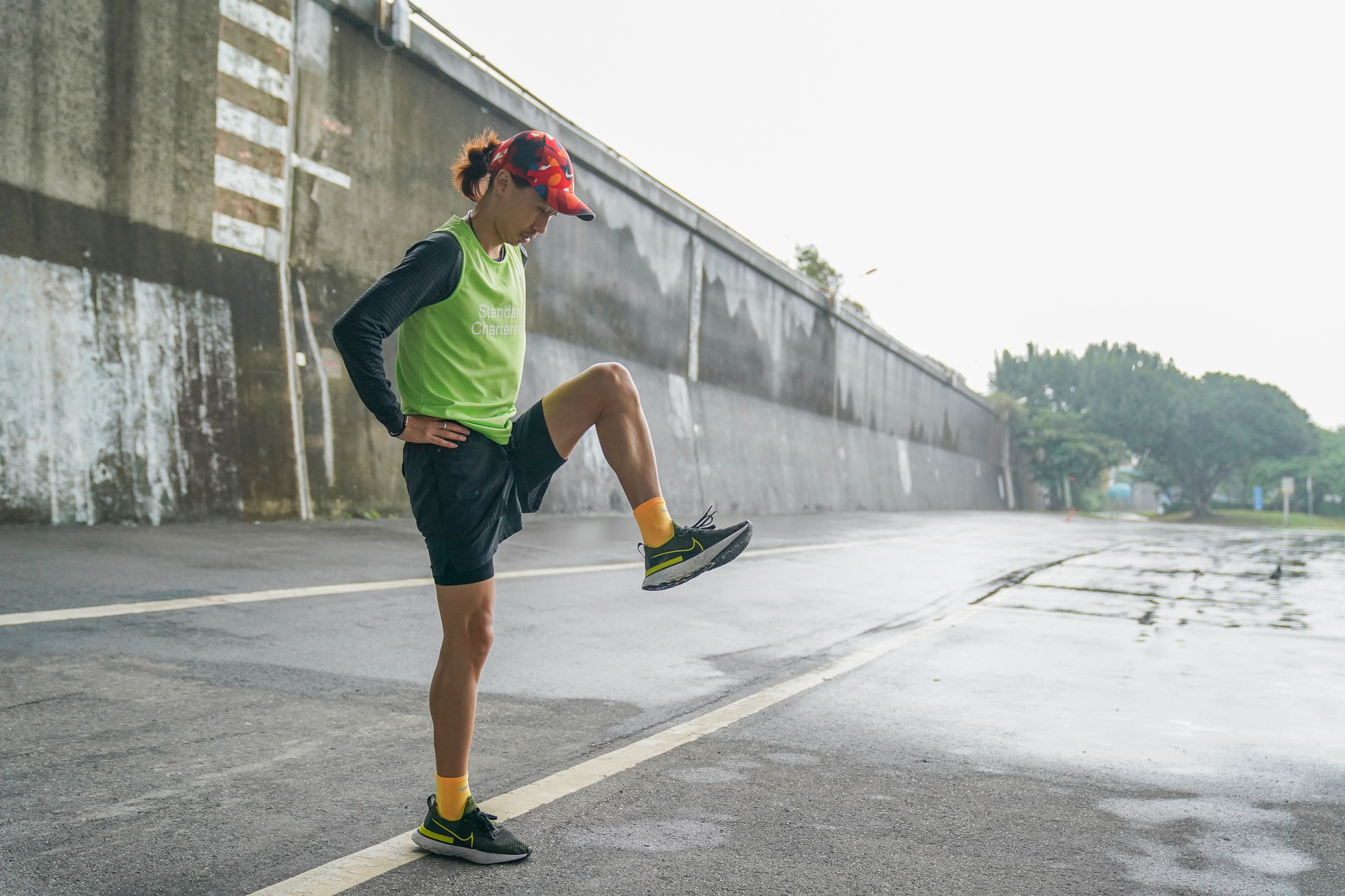 開跑前一定要做充足的暖身、拉筋,簡單的慢跑一小段,抓緊時間上廁所後就能準備起跑。