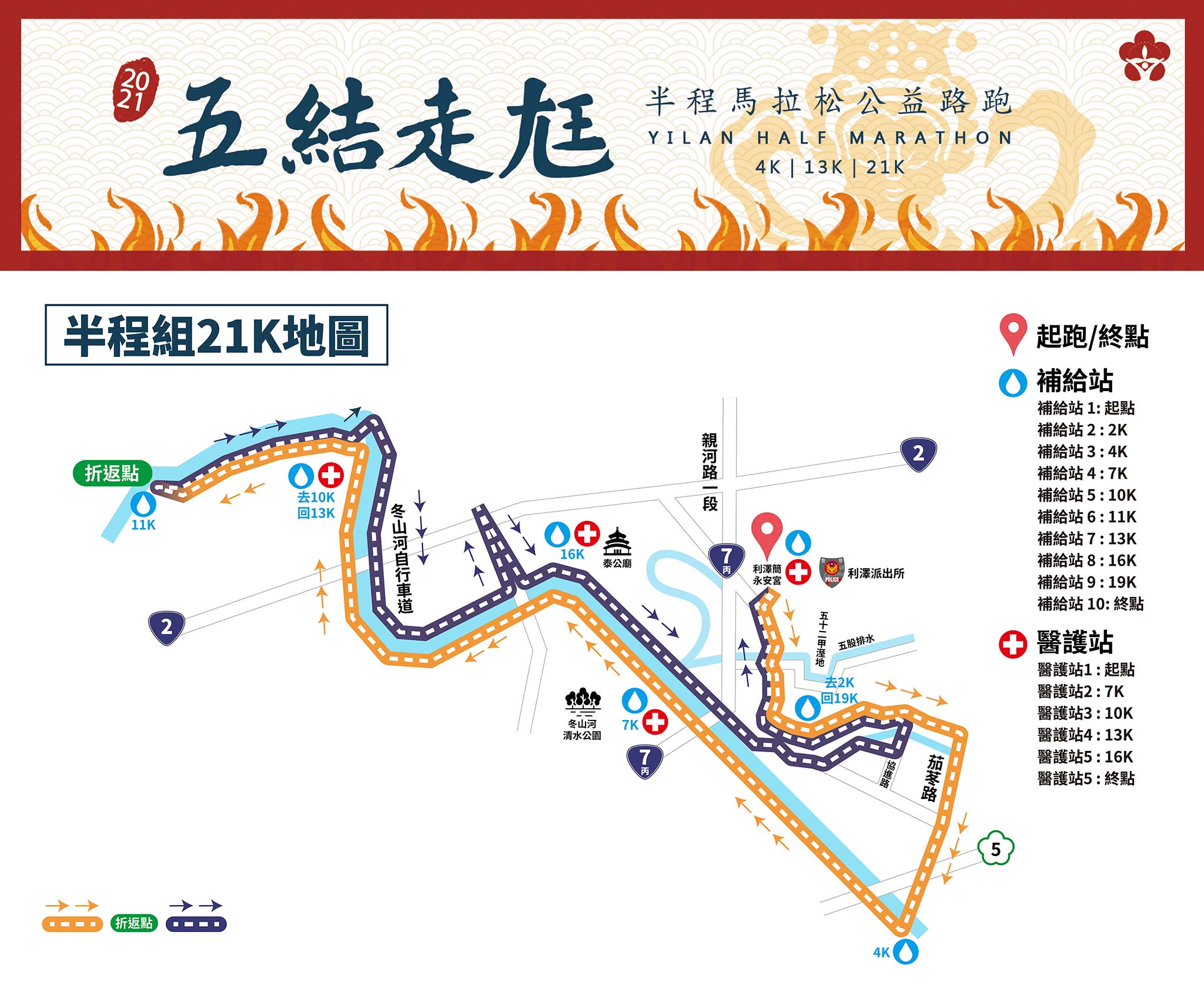21 公里半程馬拉松賽道(圖片來源:2021 五結走尪半程馬拉松公益路跑)