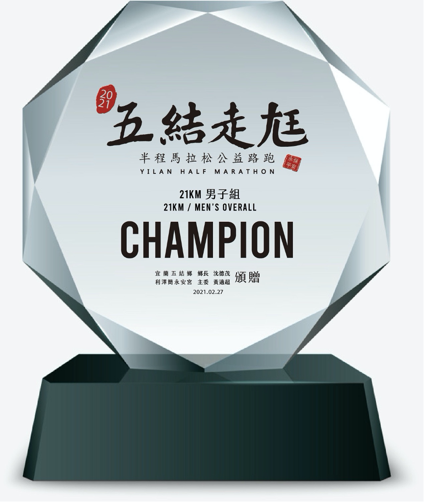 得獎獎盃(圖片來源:2021 五結走尪半程馬拉松公益路跑)