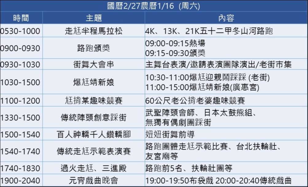 - 時間:02/27 (六)(詳細時程請參照五結鄉走尪暨廟宇嘉年華會)