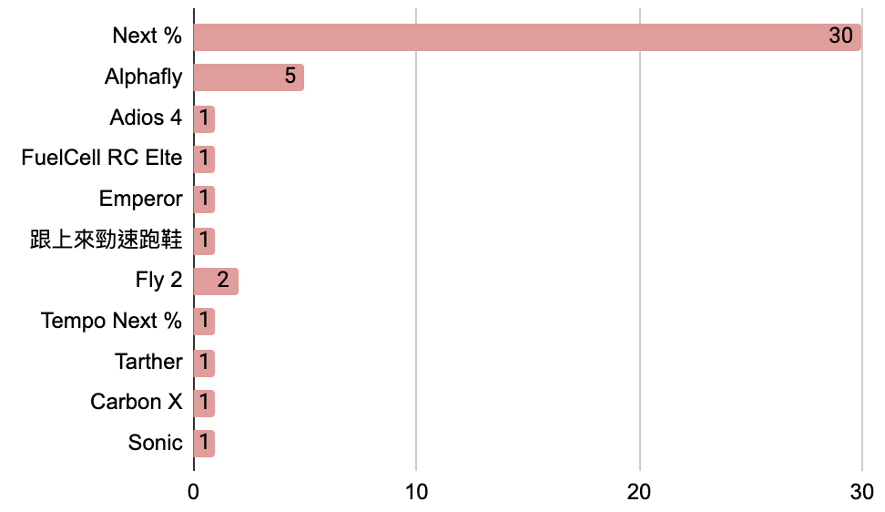 【跑鞋研究室】2020 台北馬全馬 Top 1000 跑鞋統計