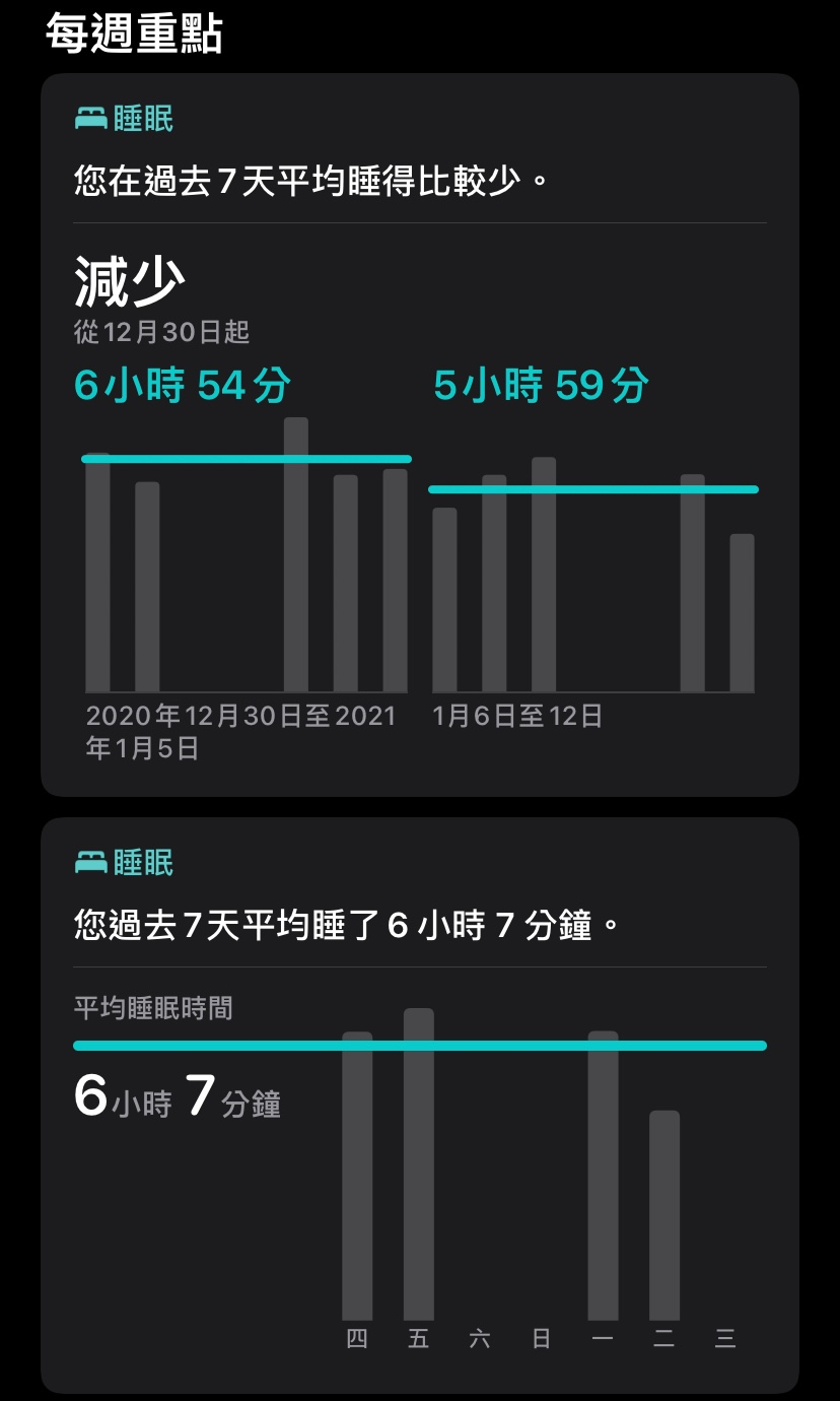 另外在電量充足的情況下,帶著錶款入睡還能偵測你的睡眠,可檢視每日的睡眠時間、睡覺時的心率、7 天的平均睡眠情形以及比較時間區段間的睡眠情形,私心希望未來也能透過這項偵測功能檢視到更多關於深層睡眠與淺層睡眠的數據。