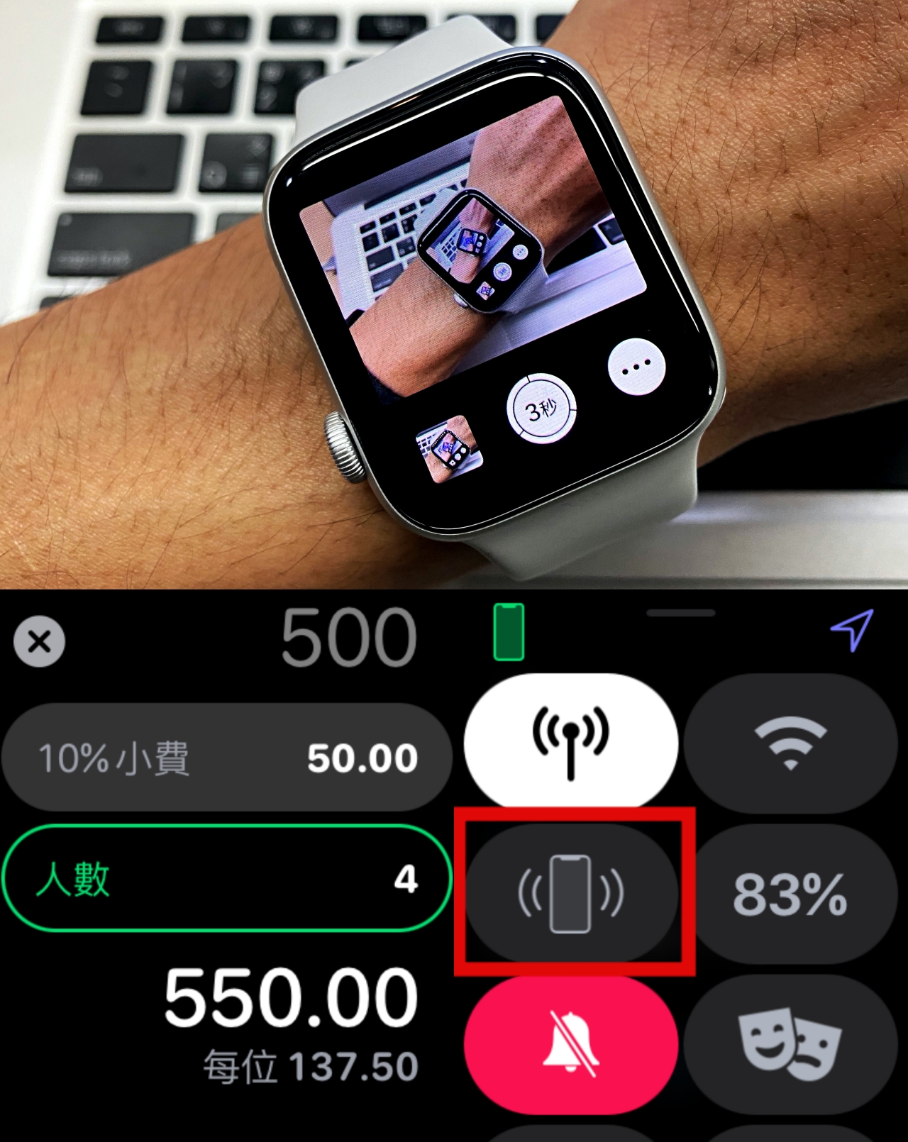 另外提供幾個個人覺得實用的小功能,許多人常忘記自己手機放在哪,這時透過 Apple Watch 的手機查找功能,即可透過響鈴或振動的方式找到遺落在附近的手機;而外出要自拍時,手錶便化身相機的遠端搖控器,相當便利;計算機中的小費與拆帳計費模式,算是外出與朋友聚餐時相當貼心的設計。