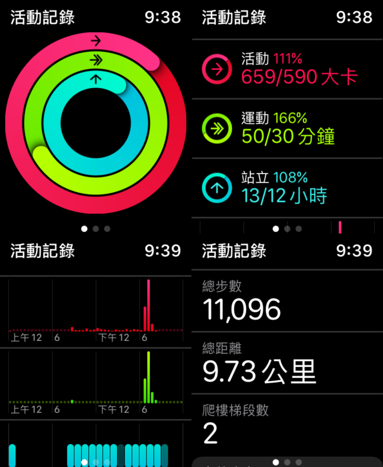 另外每次訓練中都能檢視心率是否正常,過高時調整步伐與節奏,訓練結束後也能檢視恢復為靜止心率的時間,此外,AW6 還能檢視在運動當下的血氧濃度是否偏低,這個功能在我去健身房訓練時也很有效,過去容易練到乾嘔就可能是血氧濃度過低導致。