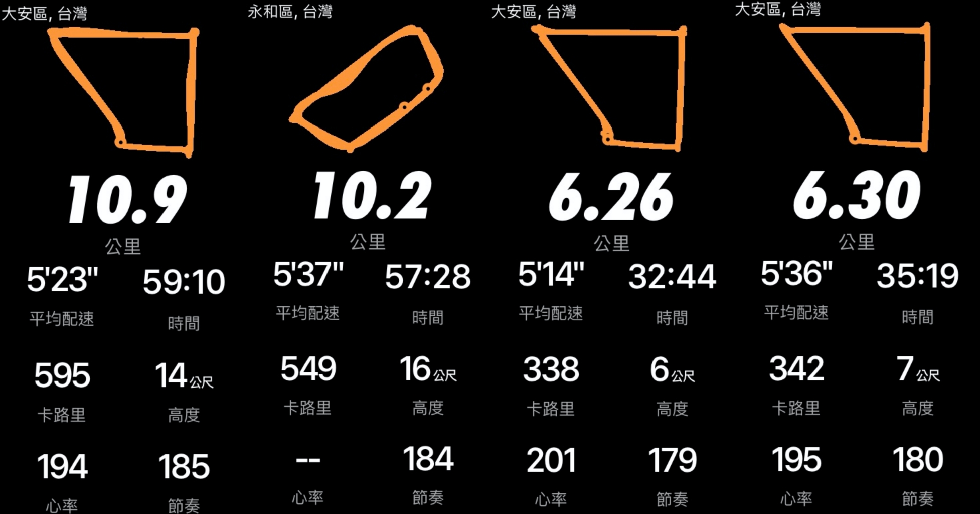摘錄期間 4 次跑步記錄(圖片來源:安德魯)