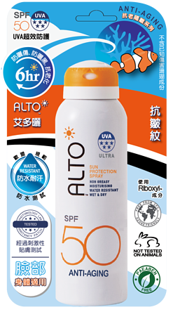 ALTO 艾多曬防曬噴霧 SPF50 抗老隔離系列 150ml(NT$600)