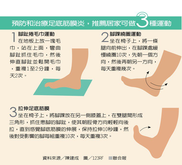 預防和治療足底筋膜炎,推薦居家可做3種運動 資料來源╱陳建成 圖╱123RF