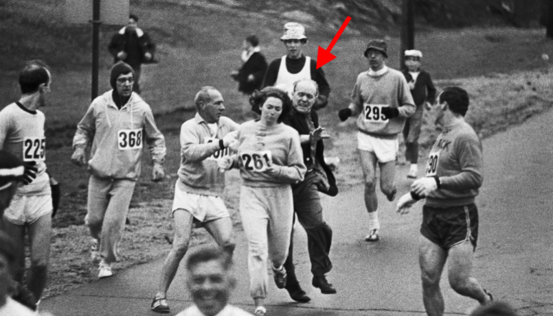 威斯策(Kathrine Switzer)1967 年參加波士頓馬拉松比賽,遭到驅趕下場,所幸在旁人幫助下,跑完全程。