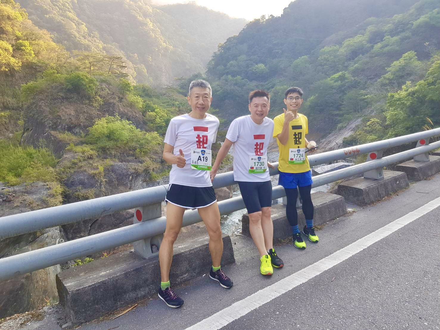 這時候,因雙腳抽筋而暫時徒步的國書大哥竟趕上我了,Michael 說:「師傅(國書的綽號)都這麼拚了,我們無論如何要撐下去,時間很充裕,不要放棄!」我告訴我自己,現在,就是召喚意志力的關鍵時刻了!一旦跑起來,不僅大腦感動到重新給力,炙熱的太陽也去睡午覺了,接下來的 30K 都在多雲涼快的天氣中進行!