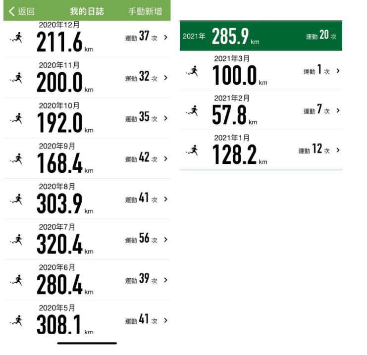 相較於 2020 年下半年的訓練量,賽前練習量趨近於零