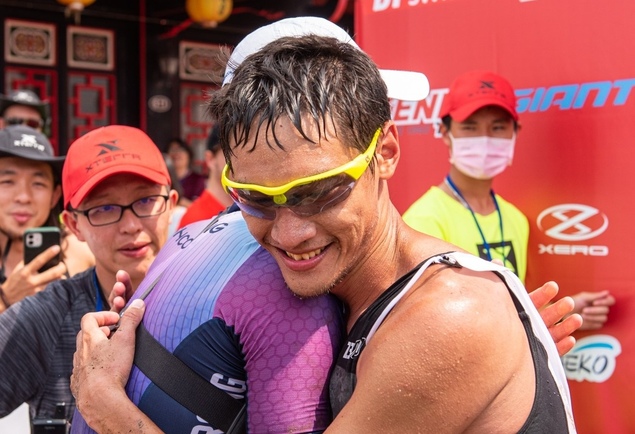進入青蛙石步道不久後,我遇到步行的阿耕,他不曾回頭,但卻能知道我是誰,他抬起下臂拍了我一把,然後,然後賽後才知道他在那之後暫時昏了過去。晚宴上,阿耕親手將分齡第一的獎盃遞給了第二名的選手,讓有潛力的運動員有機會體驗 XTERRA 的最高殿堂- 夏威夷世錦賽,所有人都佩服他的企圖心和精神。