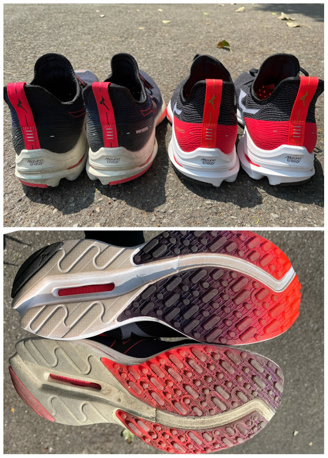 Wave Rider Neo 採用上下兩層 MIZUNO ENERZY,中間內嵌 WAVE 波浪片的結構配置。Wave Rider 24 與 Wave Rider Neo 雖然同為 12mm 掌跟差的設計,後者將中底厚度再減少 1mm。根據官方資料,Wave Rider Neo 單隻鞋重 265g (27cm),比 MIZUNO Wave Rider 24 少了 15g 。