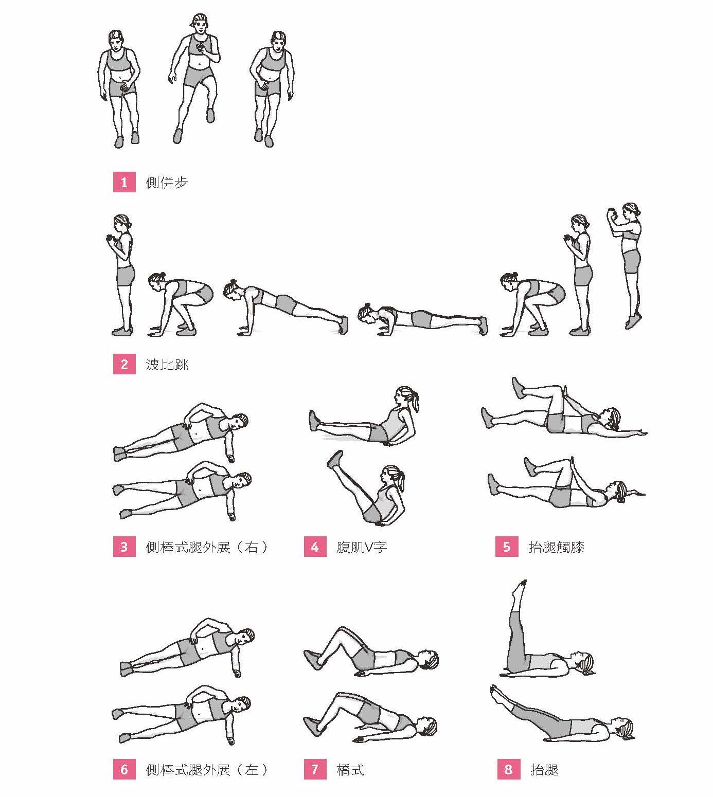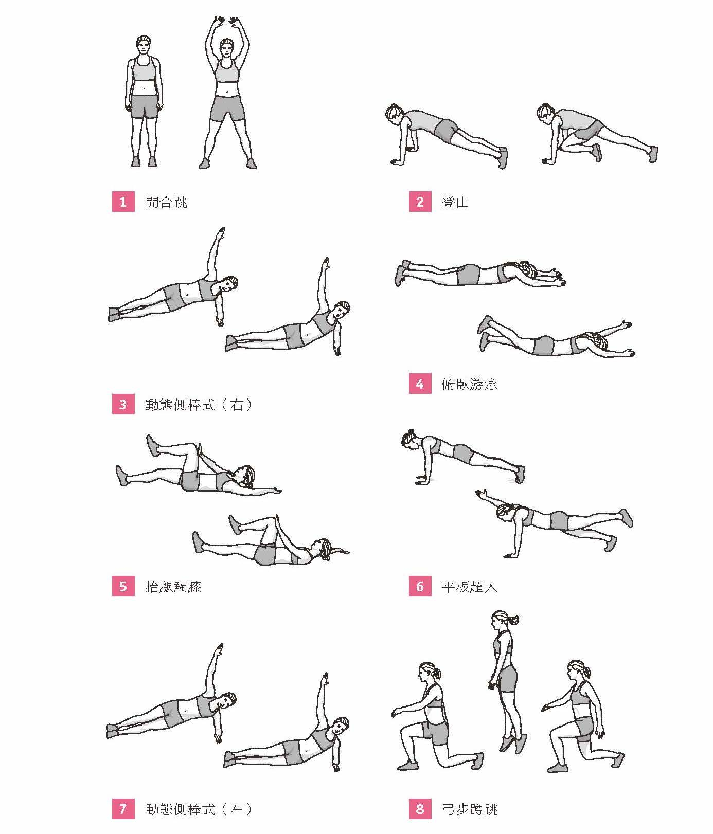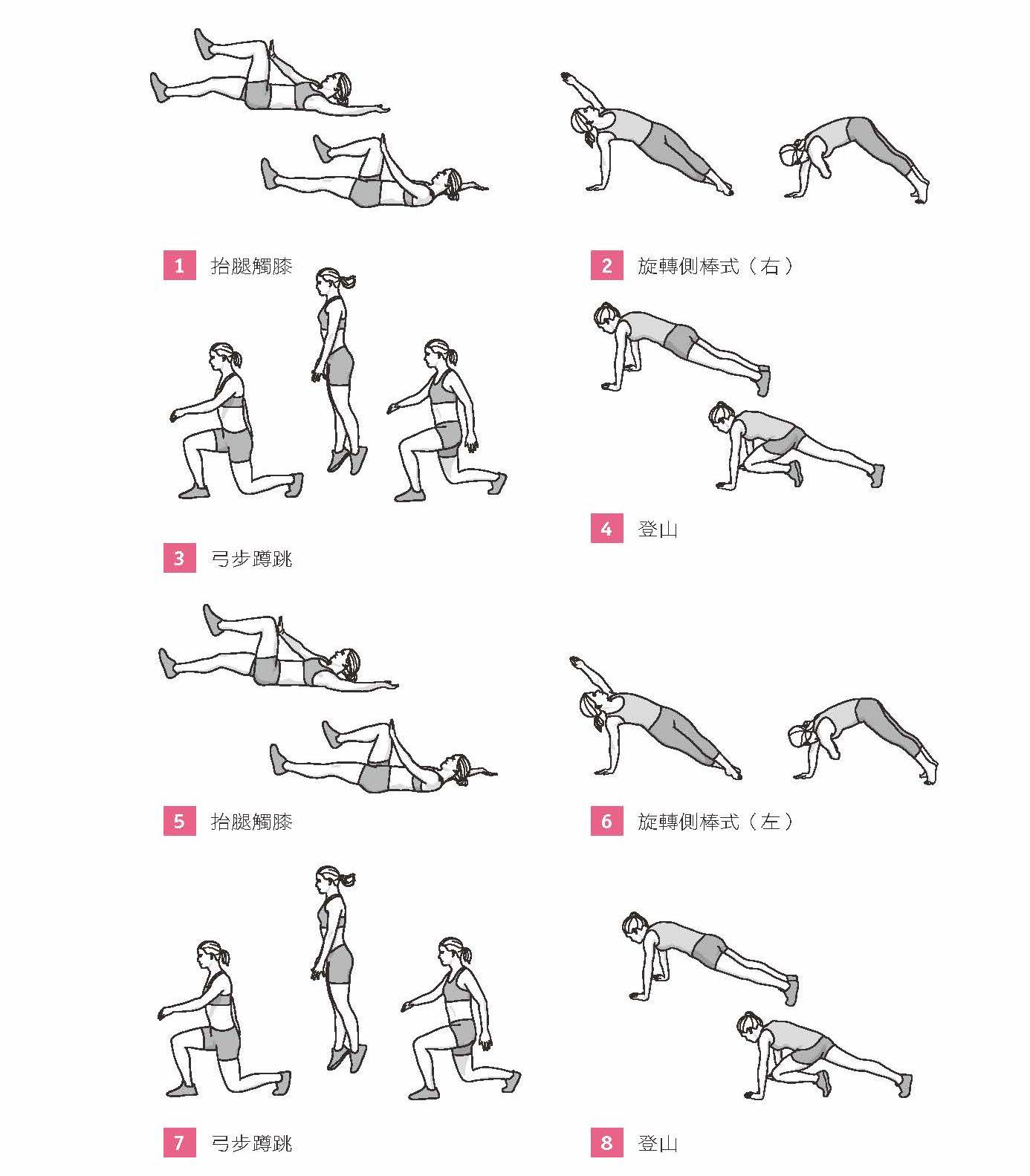 *每做完一個 Tabata(動作 1-8)休息 3 分鐘