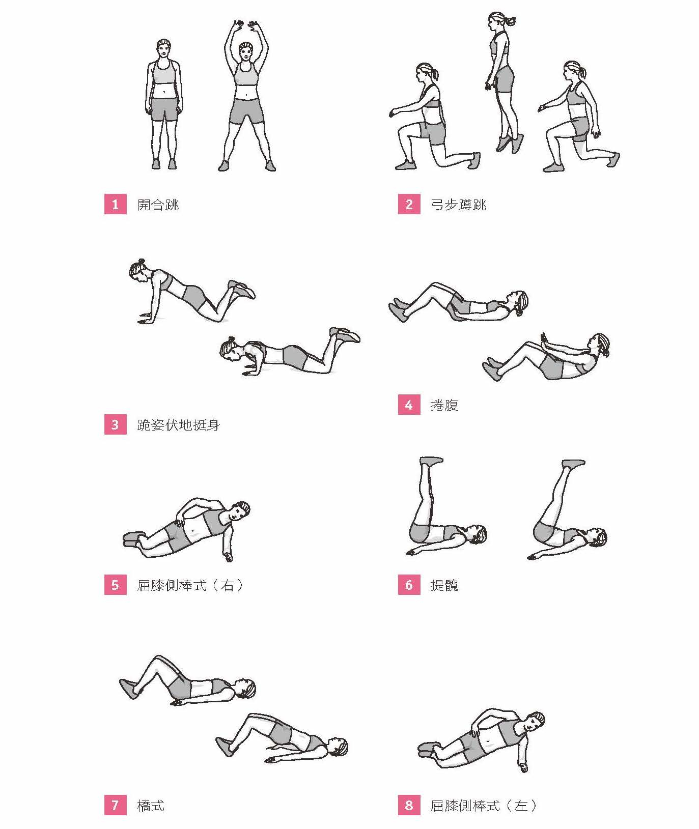 *每做完一個 Tabata(動作1-8)休息 3 分鐘