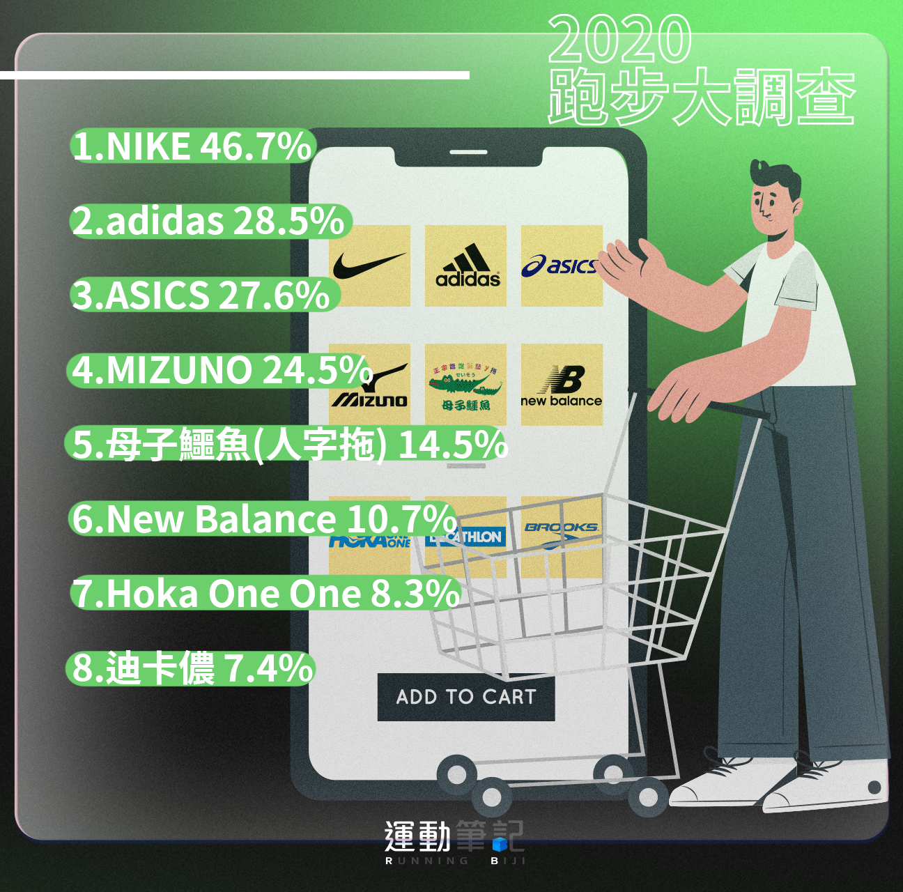 2020 NIKE 蟬聯第一名喜愛的跑鞋品牌,New Balance、Hoka One One 排名上升!