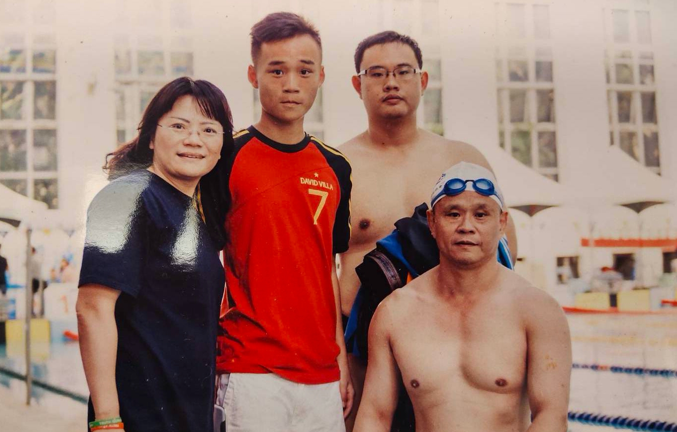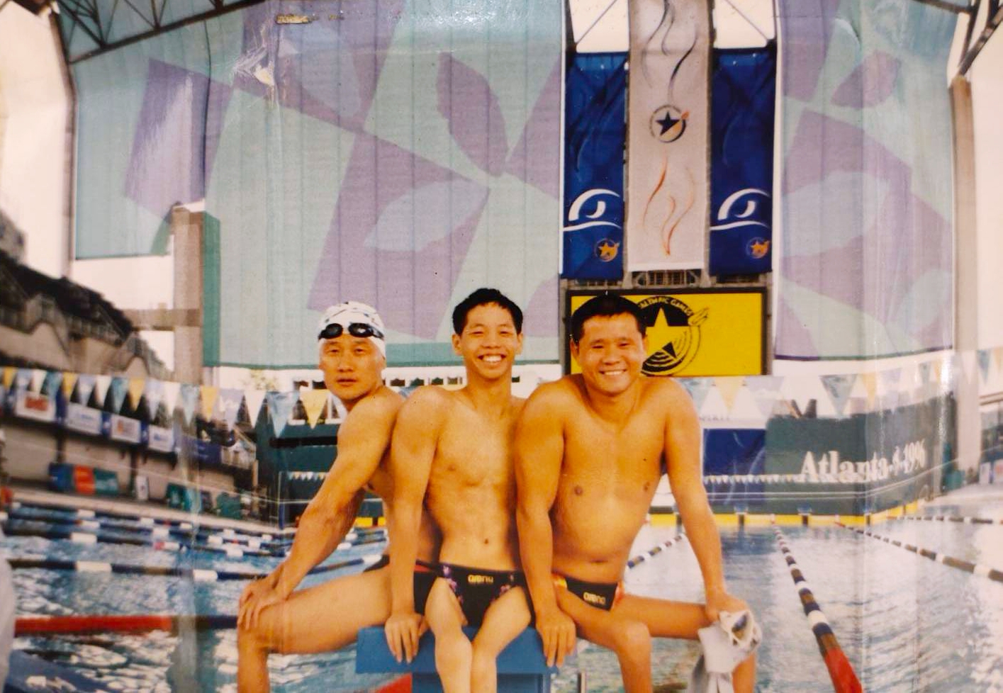 陳森棋從游不了 25 公尺,到成為登上奧運的游泳國手。圖為 1996 年 陳森棋(右)參加亞特蘭大奧運