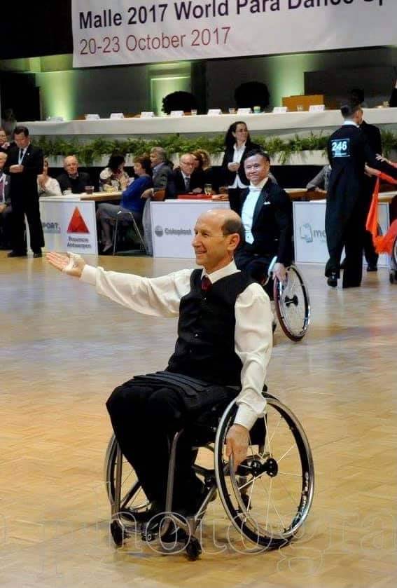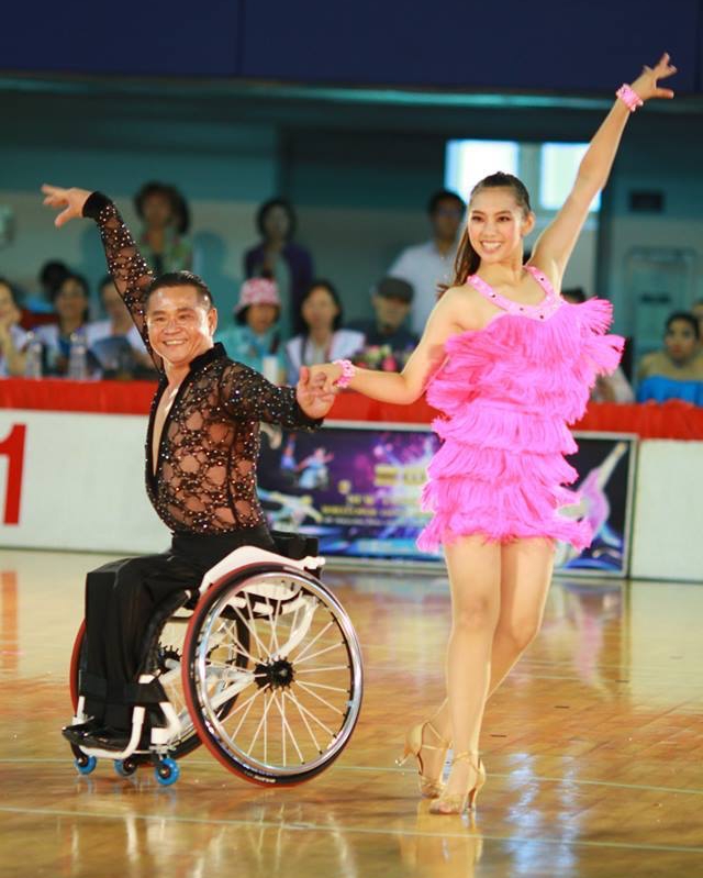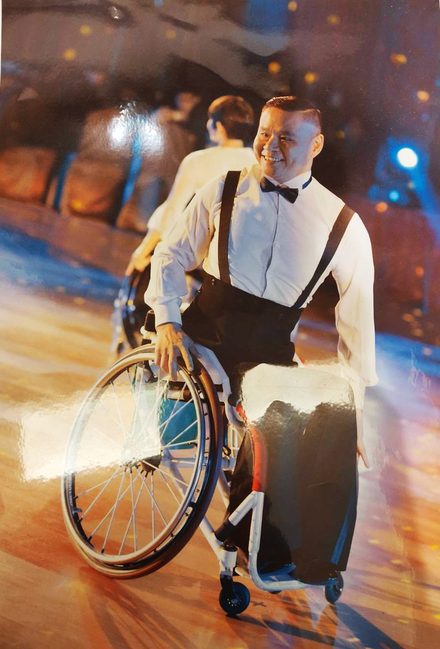 在他接觸輪椅國標舞時,得知台灣選手在 2014 年的仁川亞運拿到雙輪椅的金牌和一站一坐摩登五項*的銀牌,就覺得身為台灣的輪椅舞運動員很有奪牌希望。