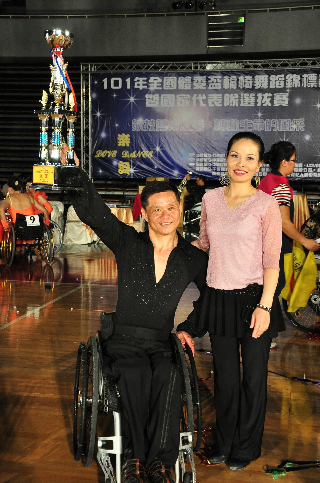 陳森棋現在以培訓下一代為重心。圖為 2012 年在全國體委盃輪椅舞國家代表隊選拔賽榮獲冠軍