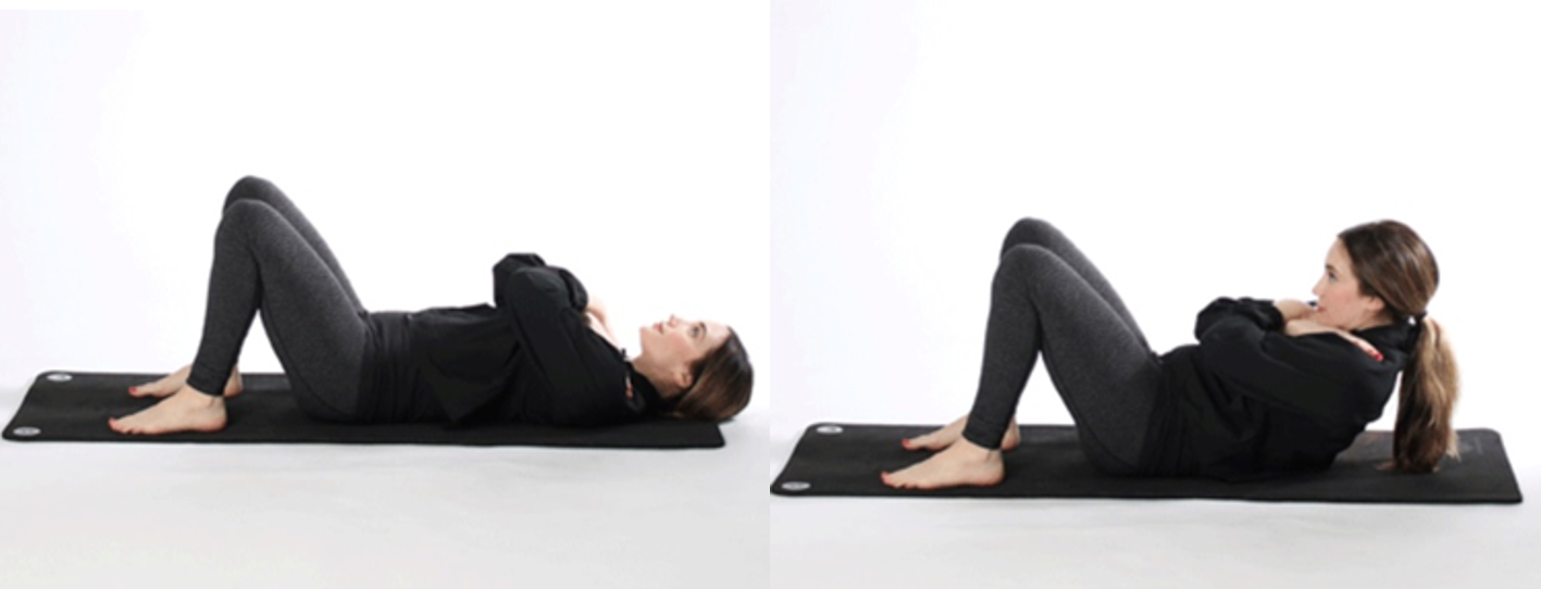 - 首先平躺著,雙腿彎曲,雙腳腳底平放在地面上。將雙手交叉抱於胸前,或者把手放於耳側,起坐時應讓腹部發力,而並非手臂。