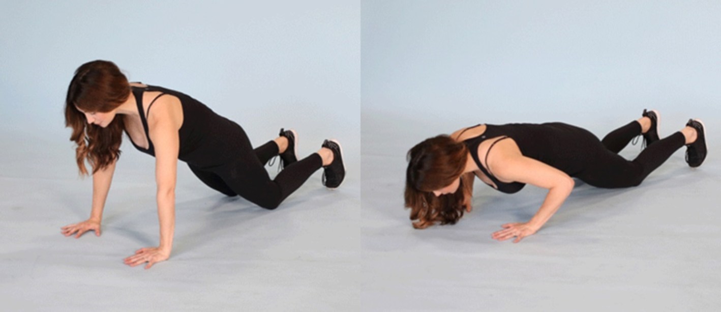 進行伏地挺身時,你舉起了將近 75% 的體重。使用修改的俯臥撑位置將其減少到總體重的 60%。