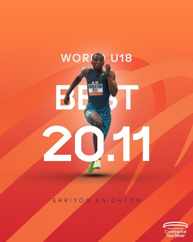 Erriyon Knighton, remember the name.@ErriyonK breaks @usainbolt's world U18 best over 200m.
