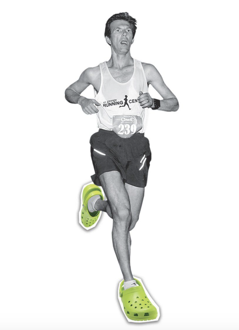 Sasha 感到好奇,並試著穿著跑,他認為在速度方面和薄底競速鞋差不多,重點是相較其他跑鞋又便宜,還可以穿著跑 2,000英里!於是,他一試成主顧,而全家人都成為 Crocs 粉。