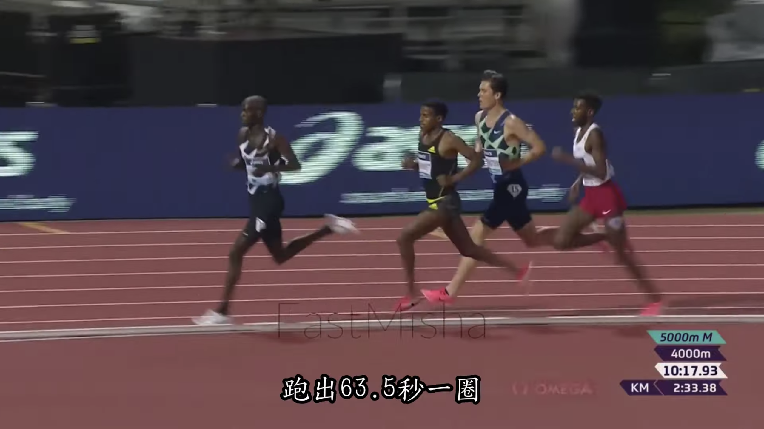 仍然被視為會奪冠的 Cheptegei 在 4000-4400 公尺時反而更慢,跑出 63.5 秒一圈