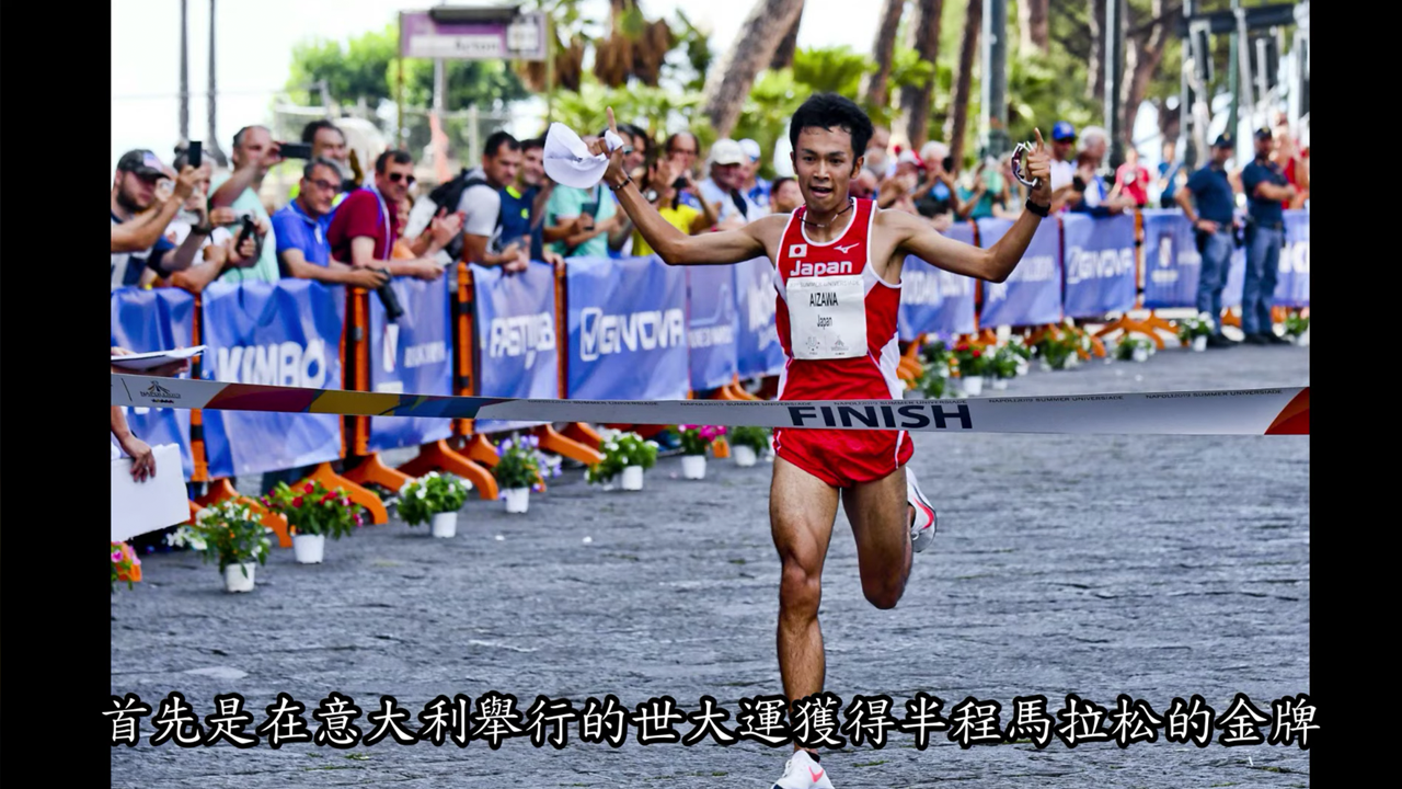 相澤晃在大四的成績近乎「完美」,圖為他在意大利舉行的世大運獲得半程馬拉松的金牌