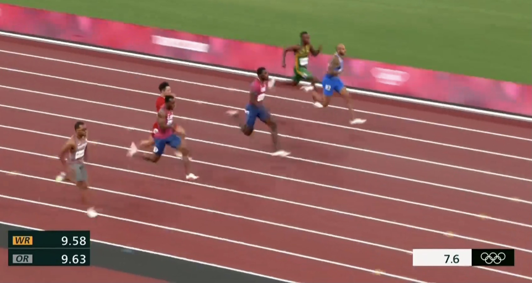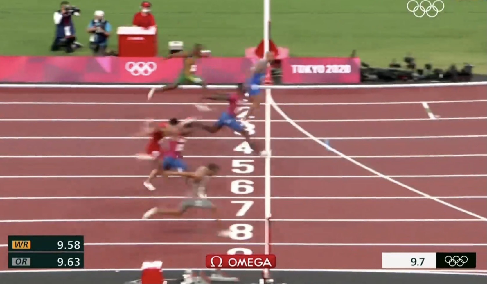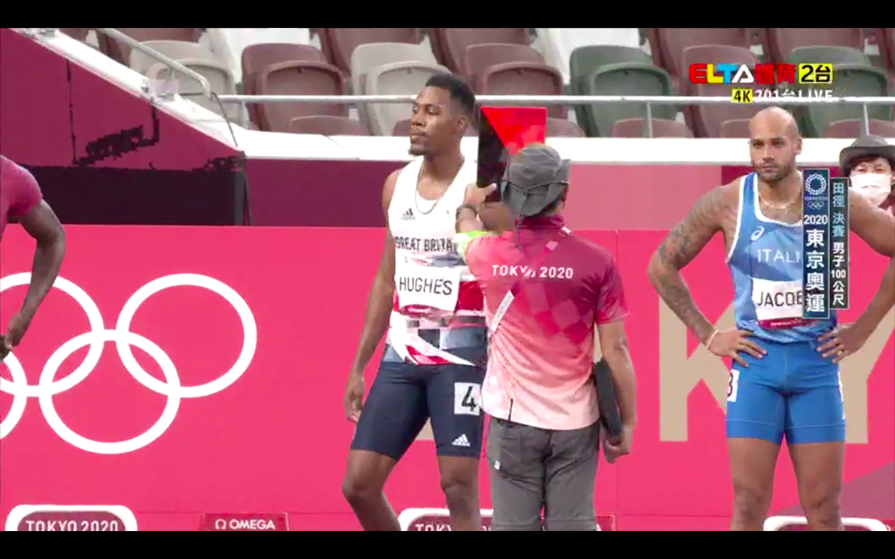 而這場最速決定戰就在 8/1 晚間 8:45 展開!賽前眾人相當看好美國隊能夠奪回短跑稱號,賽前氣氛相當緊張!鳴槍後,英國選手 Zharnel Hughes 因搶跑遭判出場,讓整場比賽更加緊張刺激!