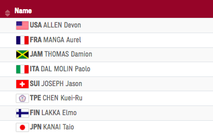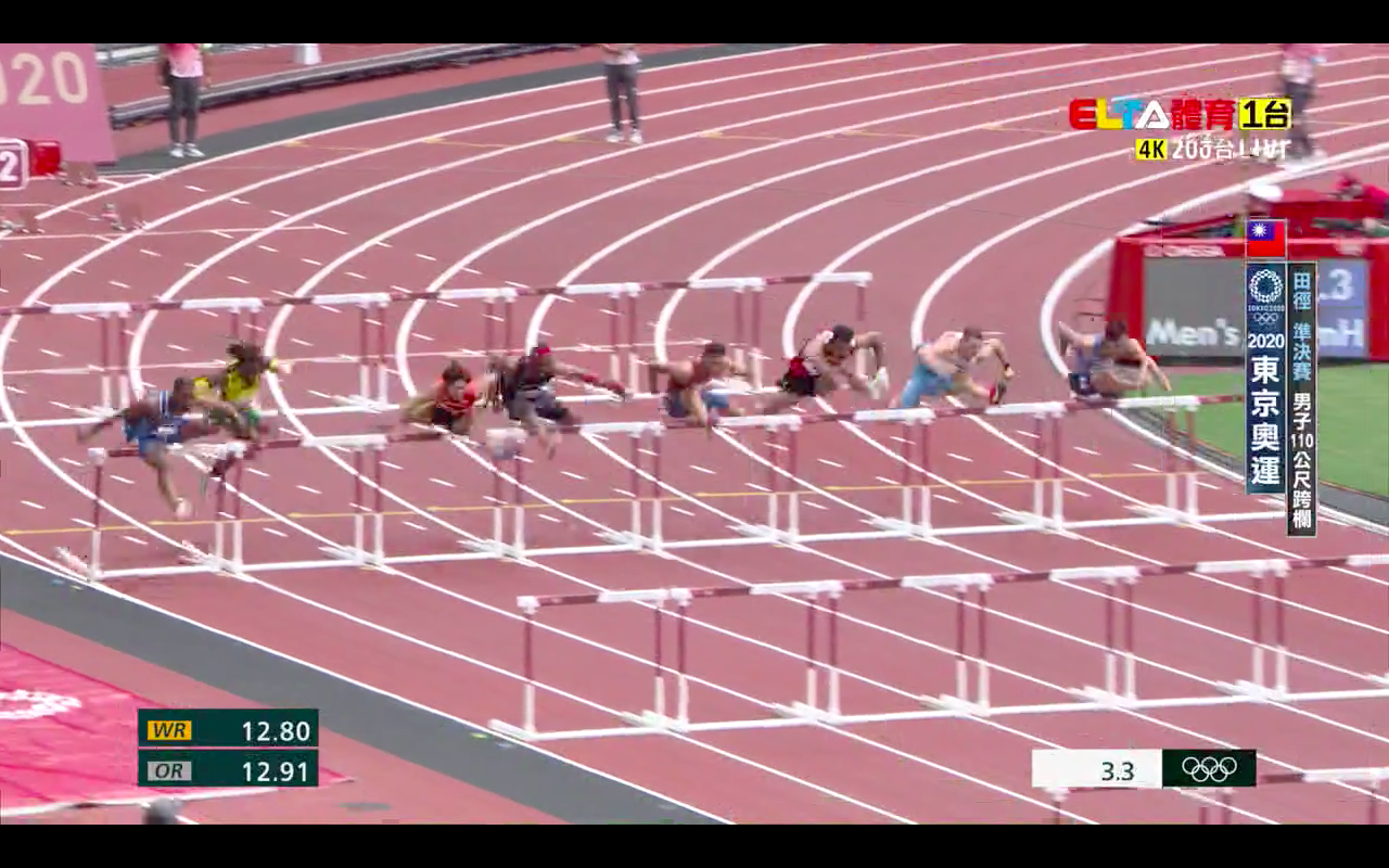 8/4 早上 10 點進行的是男子 110m 跨欄準決賽,陳奎儒此次被分在第二組,同組的有上一輪同組的法國選手 MANGA Aurel 、其中還包括了美國好手 ALLEN Devon ,他曾在 2016 里約奧運上跑出第五名的成績,牙買加年輕小將 Damion Thomas 最佳成積也有 13 秒 11。