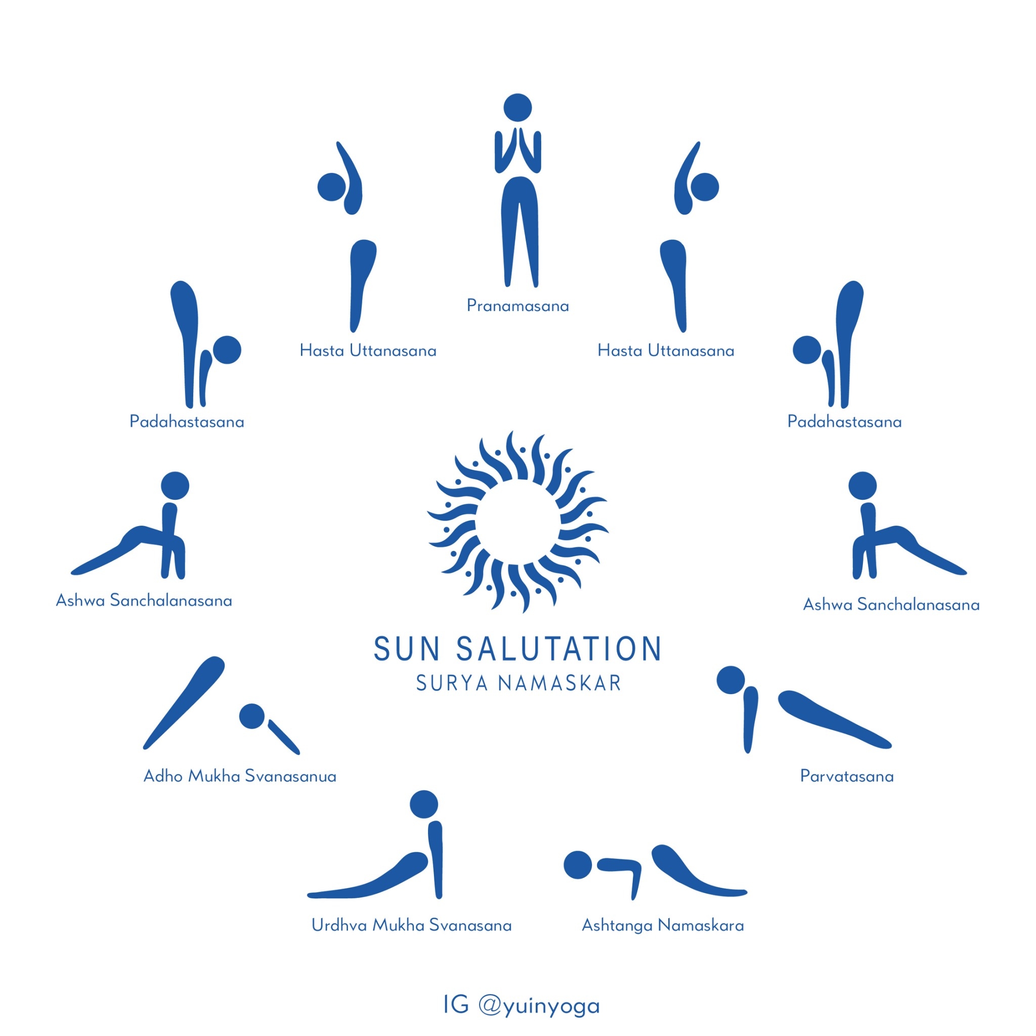 拜日式的起源為向太陽致敬,因為宇宙萬物都要依靠太陽生存,瑜伽拜日式是瑜伽基礎動作,搭配呼吸,透過伸展加強整個身體活動力,是一種調適全身的熱身運動,能夠穩定身心、促進血液循環、增強心肺功能、讓血液中的氧氣發揮最大的活化作用,增強身體的抵抗力,消除疲勞與貧血,調整自律神經,一次做完完整動作,使人覺得精力飽滿!