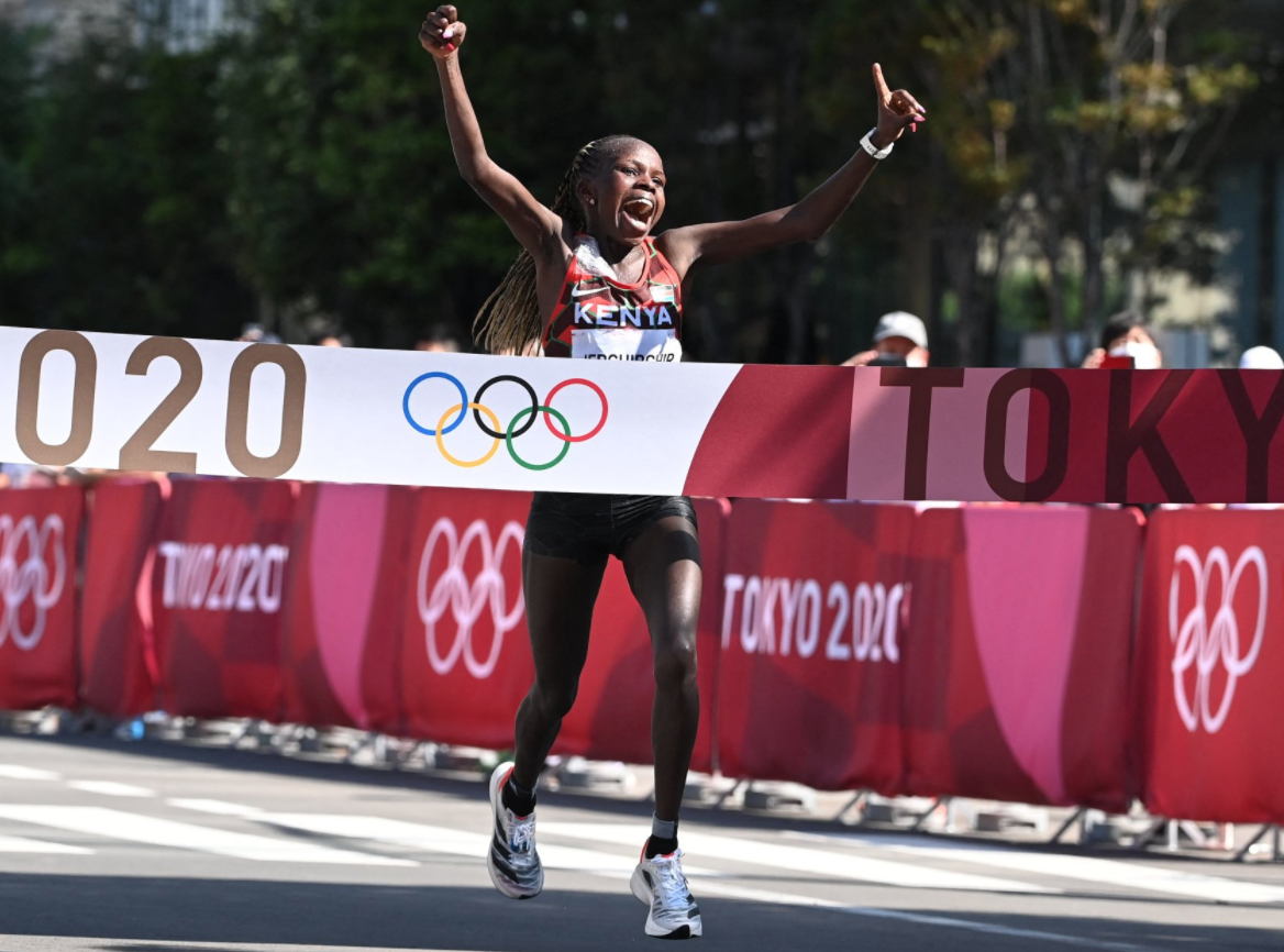 Peres Jepchirchir 通過終點拿下金牌(圖片來源:Twitter)