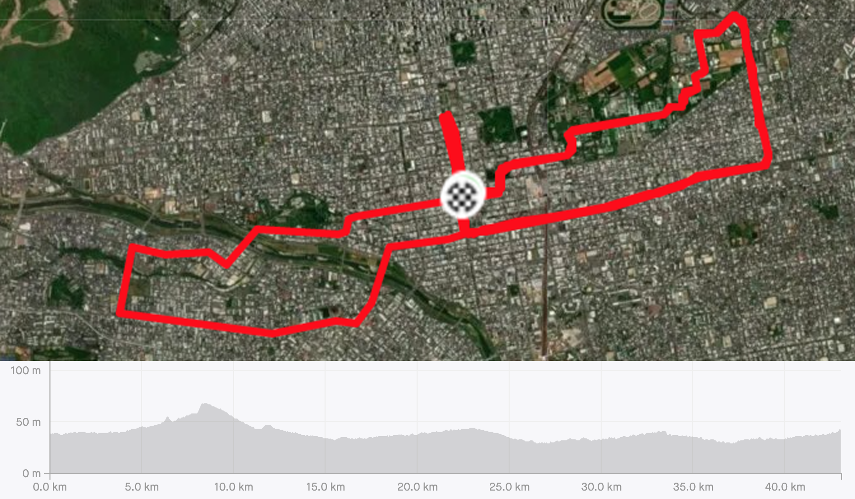 領先集團 25k 以 1:28:51 通過,20-25k/ 17:22,選手進入小圈 10k 路線,大概是 7k 緩上坡 2%、3k 下坡 3%,此時領先集團瘦身到 12 人包括肯亞三位選手、以色列的 Lonah Salpeter、美國 Molly Seidel、Sally Kipyego、日本 一山麻緒。