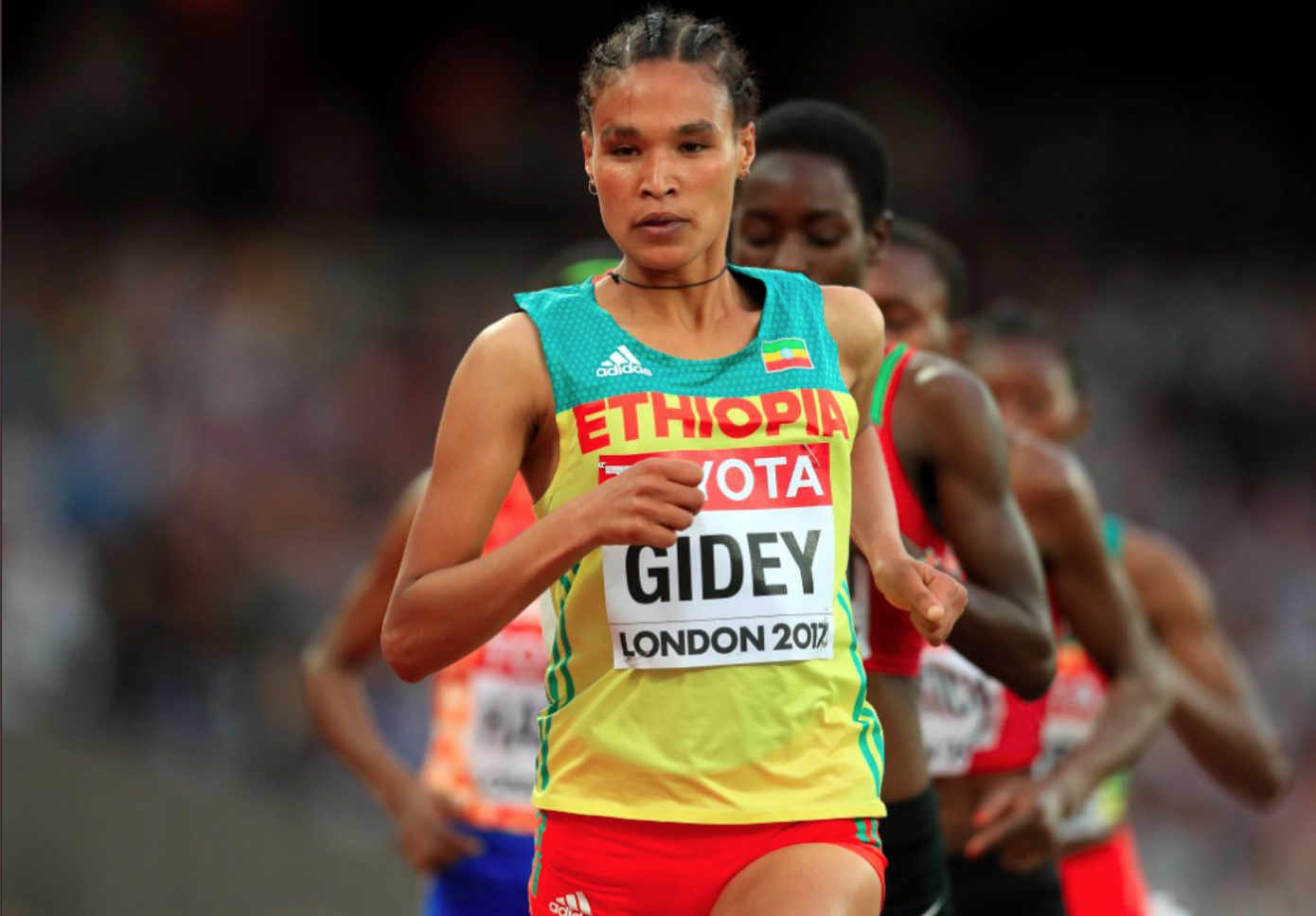 Gidey 出來領跑將近 7000m(圖片來源:Twitter)