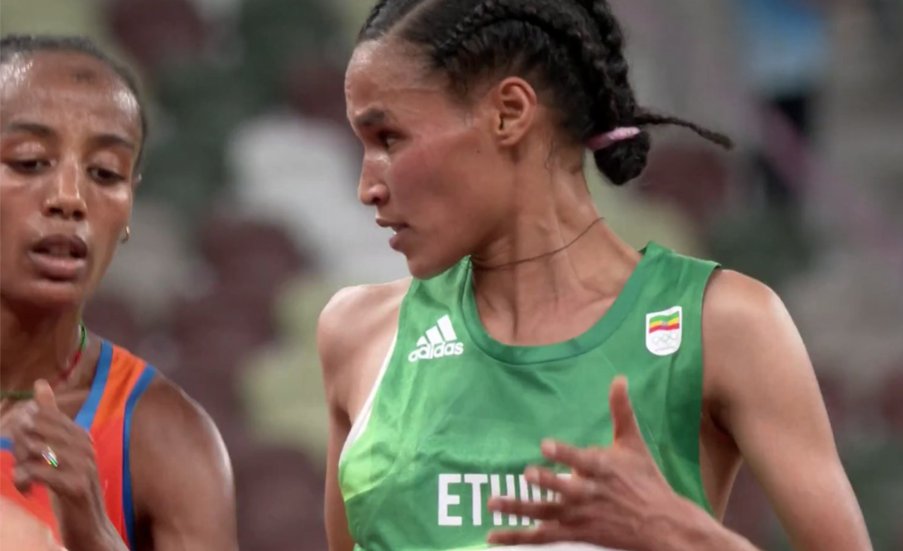 Gidey 回頭和 Hassan 簡短交談(圖片來源:Twitter)