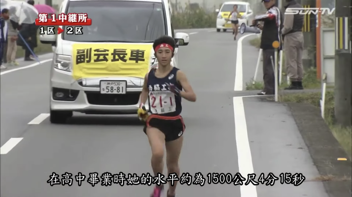 雖然她已屬於頂尖的高中跑者,但在高手雲集的日本來說還不算最厲害的選手,例如在「全国高等学校総合体育大会陸上競技大会」中即便高中三年都成功出賽,但都沒有拿過一次冠軍,在高中畢業時她的水平約為 1500 公尺 4 分 15 秒、3000 公尺 8 分 59 秒。