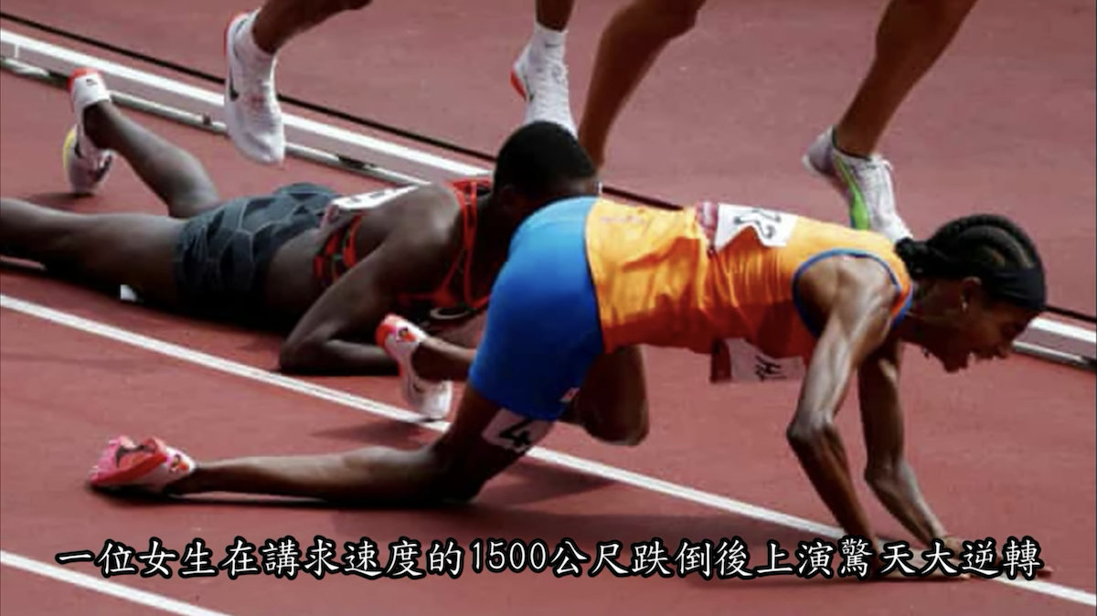 在 2021 年 8 月 2 日的東京奧運女子 1500 公尺預賽上,一位女生在1500 公尺跌倒後上演驚天大逆轉,拿下小組第一