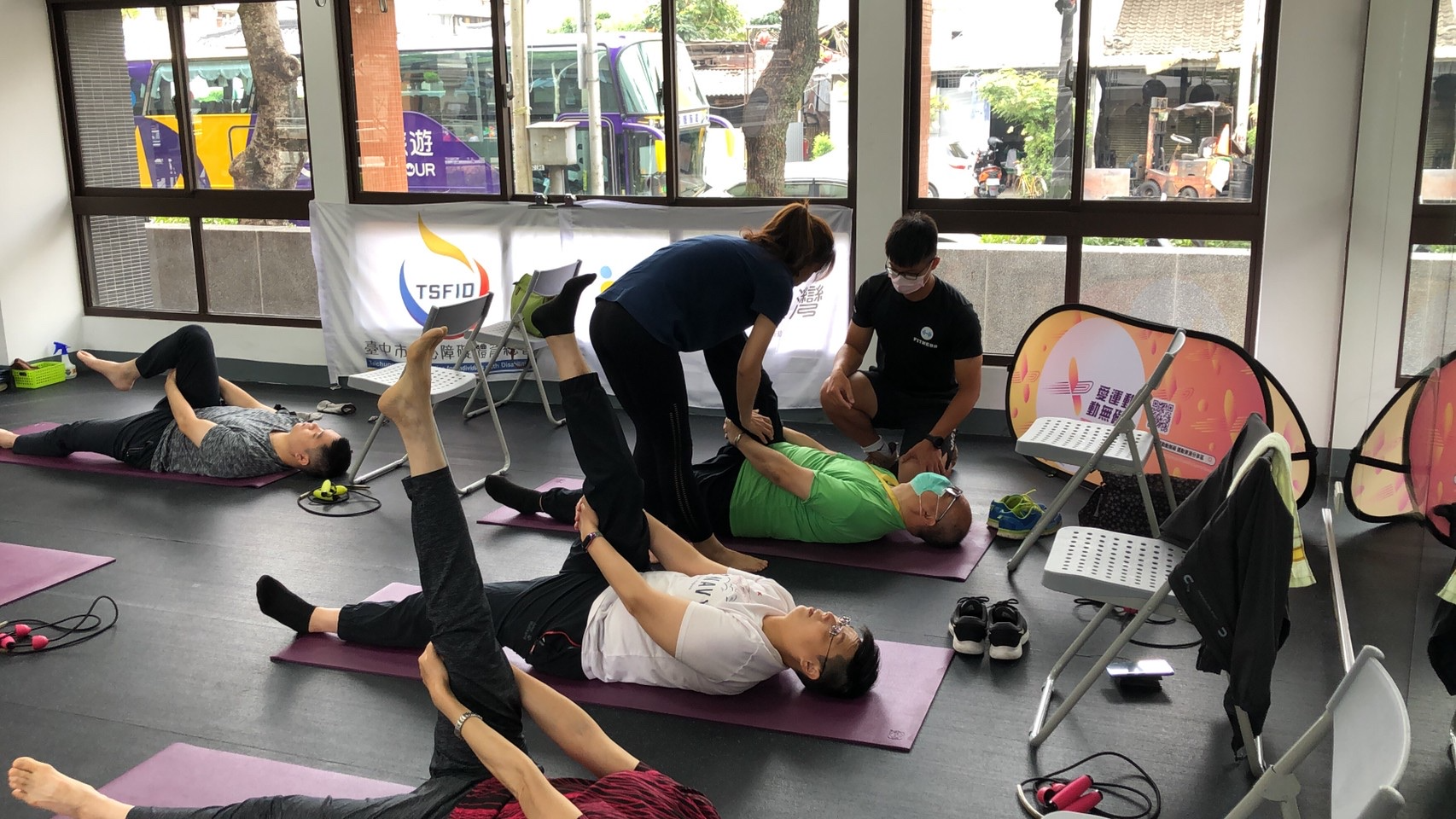 早在課程起跑前,4 月上旬便開設第一次研習課程,有效提升運動中心教練們的教學知能。三級警戒打亂原有步調,所幸台中指導團藉由過往豐富經驗而隨機應變,即時轉換為線上課程,並使用 Google meet 增強課程互動性。原本分散在 4 所運動中心的 8 堂課變成皆可任選,學員反倒享有更多的運動機會!線上課程必然有不足之處,但台中指導團使用回饋表了解、追蹤學員近況,並寄送彈力帶作為教具,適時改善教學成效。