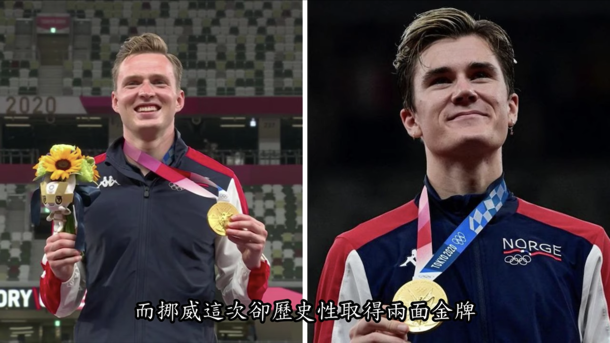 挪威在今年東京奧運總共拿下四面金牌,其中兩面來自田徑,一面是 Karsten Warholm(左)的 400 公尺欄的世界紀錄,另一面是 Jakob Ingebrigtsen(右)在男子 1500 公尺取得