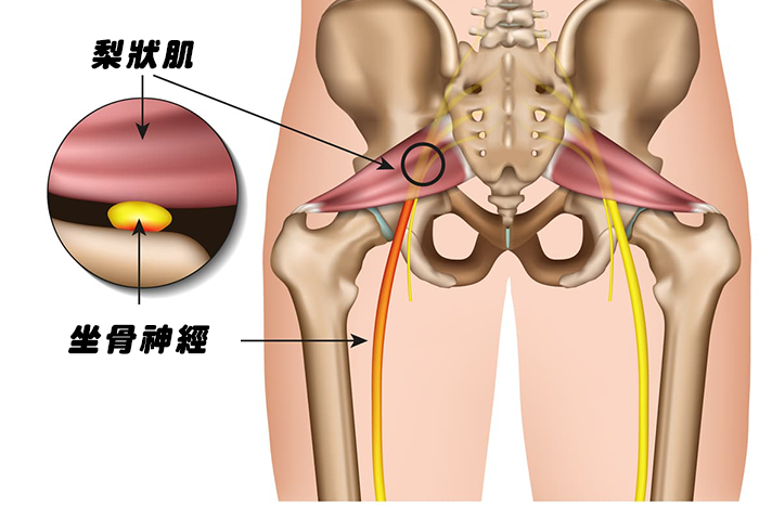 梨狀肌症候群是由梨狀肌壓迫坐骨神經引起的神經肌肉疾病,坐骨神經是人體最大的神經,從腰部一路延伸到腳底,但梨狀肌症候群不完全等於坐骨神經痛,坐骨神經痛也有可能是因為椎間盤突出或膕繩肌腱炎等腰椎疾病所引起。導致梨狀肌症候群的原因有可能是久坐、運動傷害等,最常見的症狀包括臀部隱隱作痛、大腿後側和足部產生灼熱感、髖關節活動範圍縮小、上樓梯或久坐後疼痛加重。