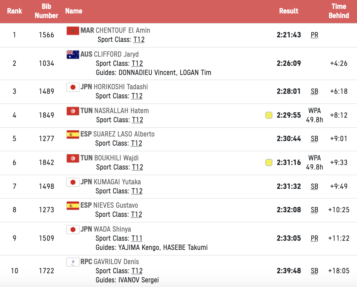 2016 里約帕運金牌的摩洛哥好手 El Amin Chentouf,在 T12 視障等級的男子馬拉松,以 2:21:43 打破帕運紀錄的成績衝破終點!