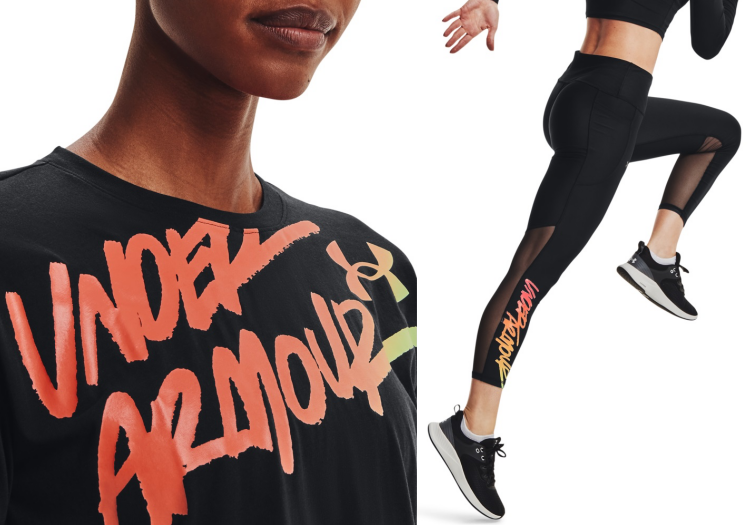 鮮豔奪目的霓虹色系為 80 年代必備流行元素之一!UNDER ARMOUR 全新推出「UA 80s」魅力新品掌握復古搭配元素,提供女性運動更多元的時尚搭配。UA 80s 短袖上衣及短版背心,以漸層霓虹色大膽渲染品牌 LOGO,妝點洋溢活力,恣意揮灑的手寫字體與材質綿柔觸感,彰顯 80 年代女性運動風潮帶來的自在與自信。